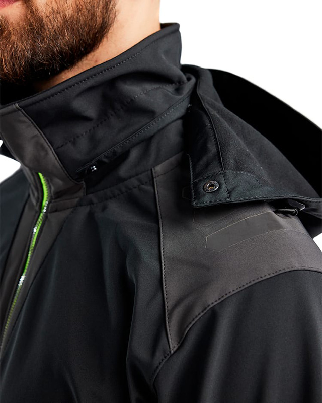 Flexible and versatile soft shell jacket with adjustable hood. Dark reflectors on the shoulders and back, plus robust zips The jacket is designed to provide maximum freedom of movement and is made of a stretchy, wind and waterproof fabric.