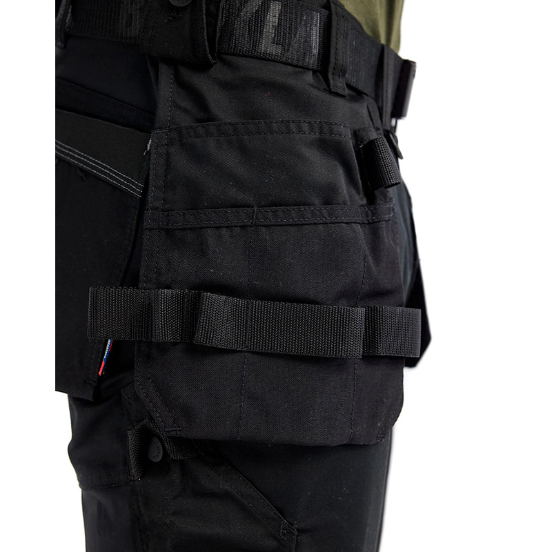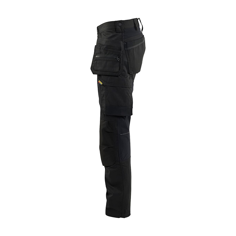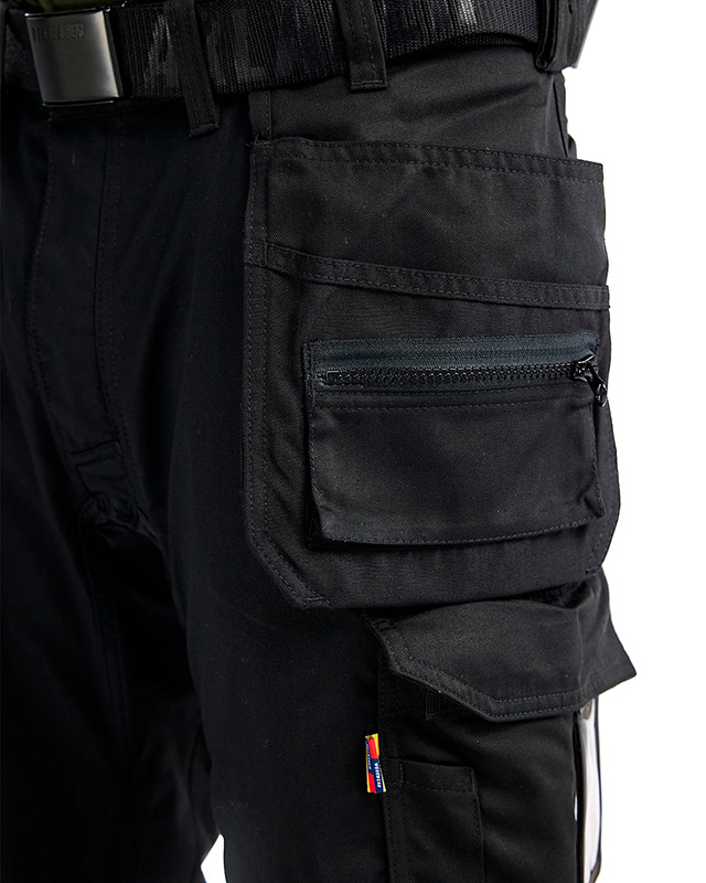 The trousers have fixed tool pockets, bottom-fed knee protector pockets with CORDURA®-stretch, practical pockets with reinforcement, ruler pocket, front pockets and loop for hammer holder on both the left and right sides.